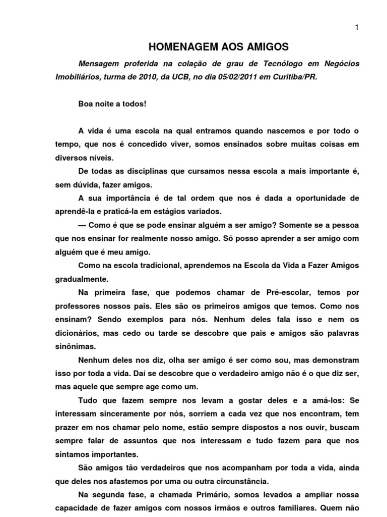 Homenagem Aos Amigos Discurso Na Formatura Da Ucb https://pt.scribd.com/doc/55366498/Homenagem-Aos-Amigos-Discurso-Na-Formatura-Da-Ucb